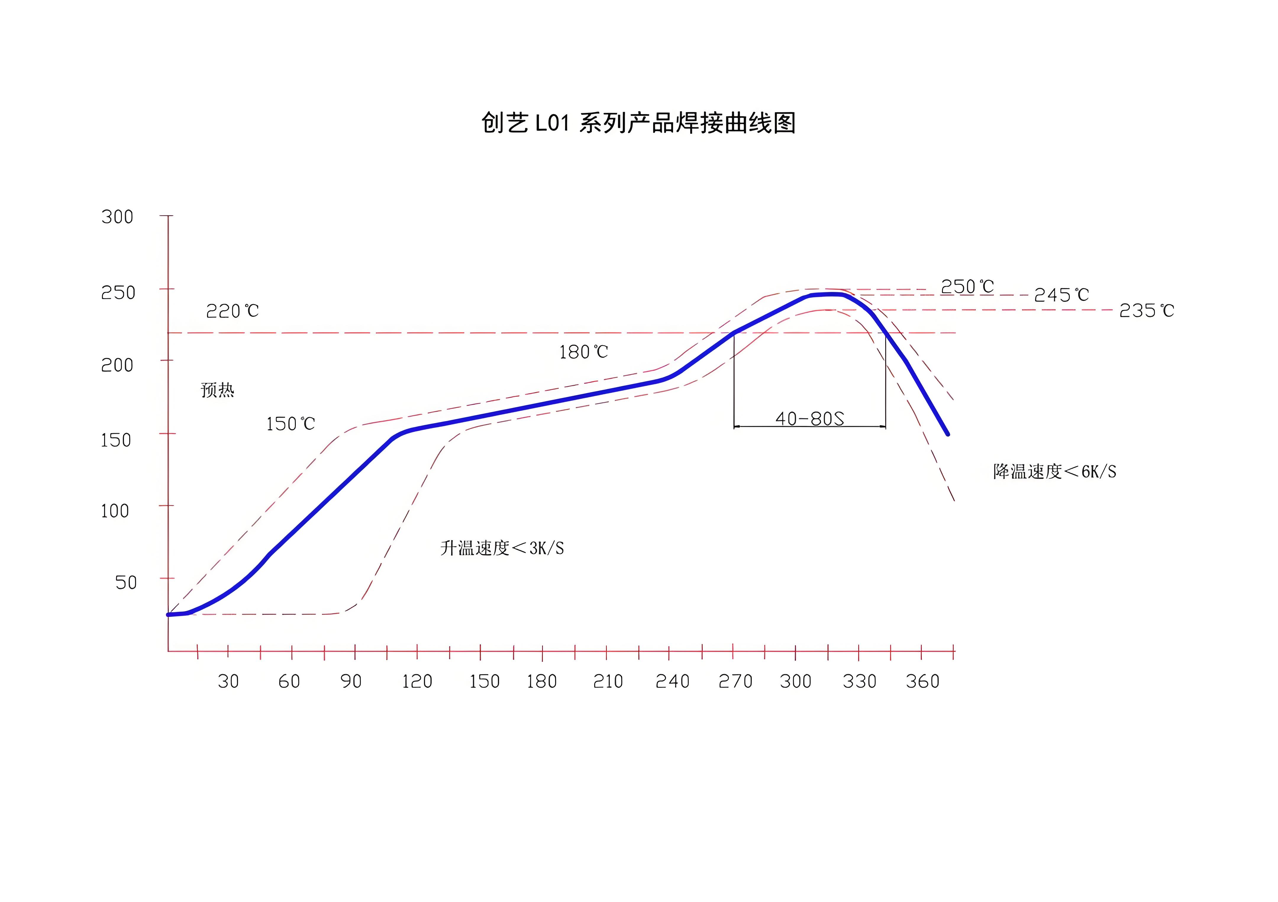 1、本產品適用于回流焊接工藝?;亓骱附宇A熱區(qū)工藝指引:預熱時間80-150秒。(1、有鉛錫膏,室溫至130℃,升溫速度2.5℃/秒以下。2、無鉛錫膏,室溫至130℃,升溫速度1-3℃/秒。)由于各用戶具體應用所要加工的組件在規(guī)格、構造、精度及焊接機器和焊劑都不盡相同,所以我們建議用戶在正式焊接之前首先進行試驗以確保產品及生產工藝的高度契合。由于進行回流焊接的具體溫度和時間會有所差異,接線端子可能會產生一定的顏色偏差。但是不會影響接線端子的使用功能。