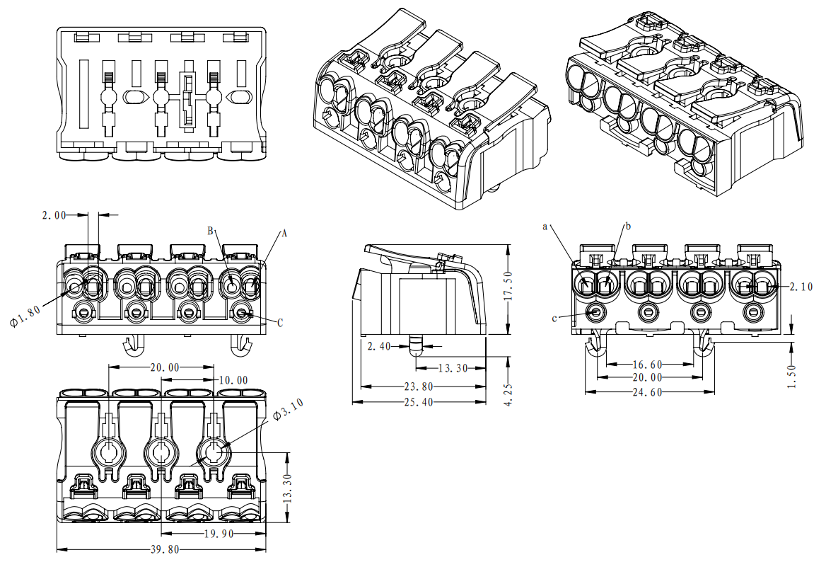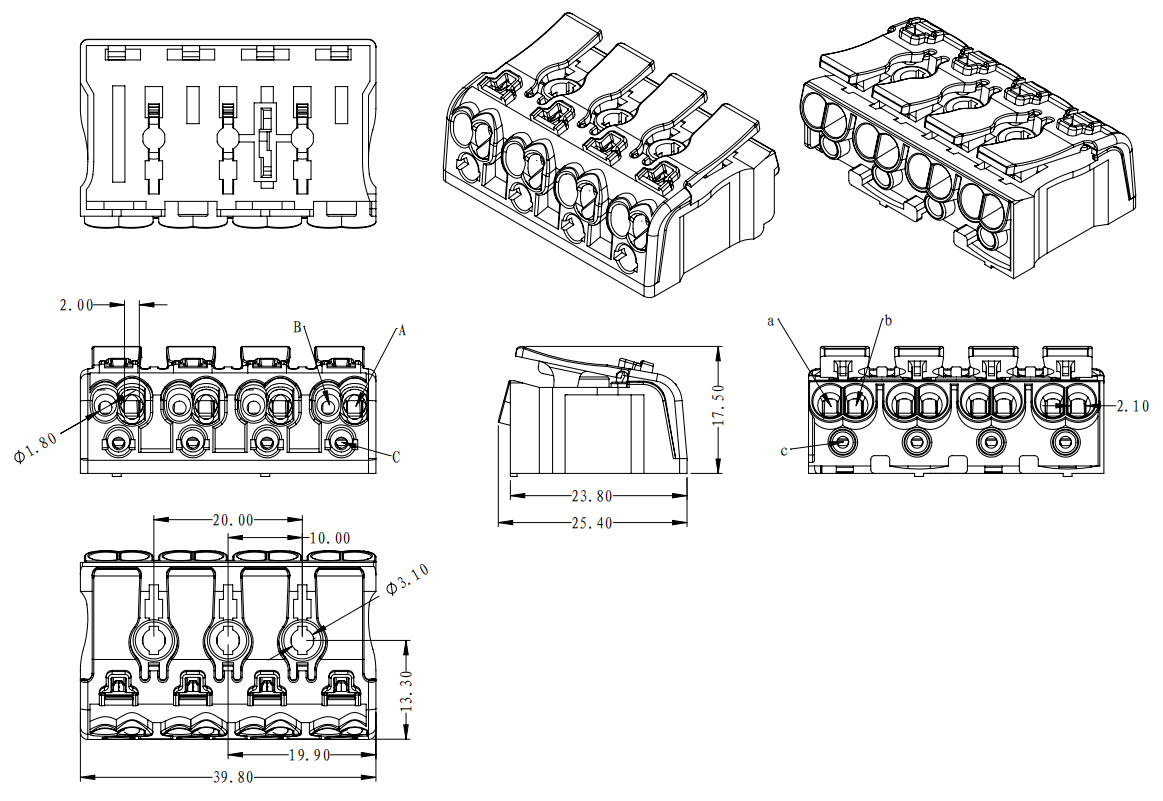 工廠側(cè) | A孔 | 實(shí)芯線 | 0.5-2.5mm2 | AWG 14-20 |