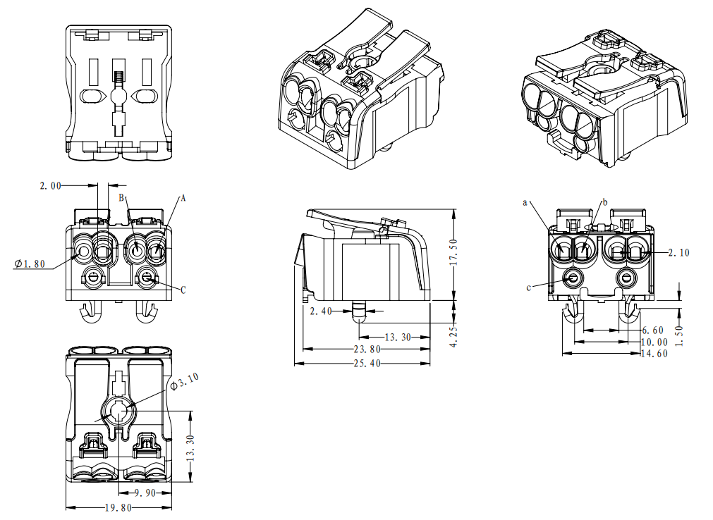 工廠側(cè) | A孔 | 實芯線 | 0.5-2.5mm2 | AWG 14-20 |