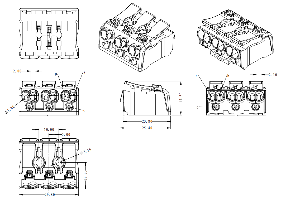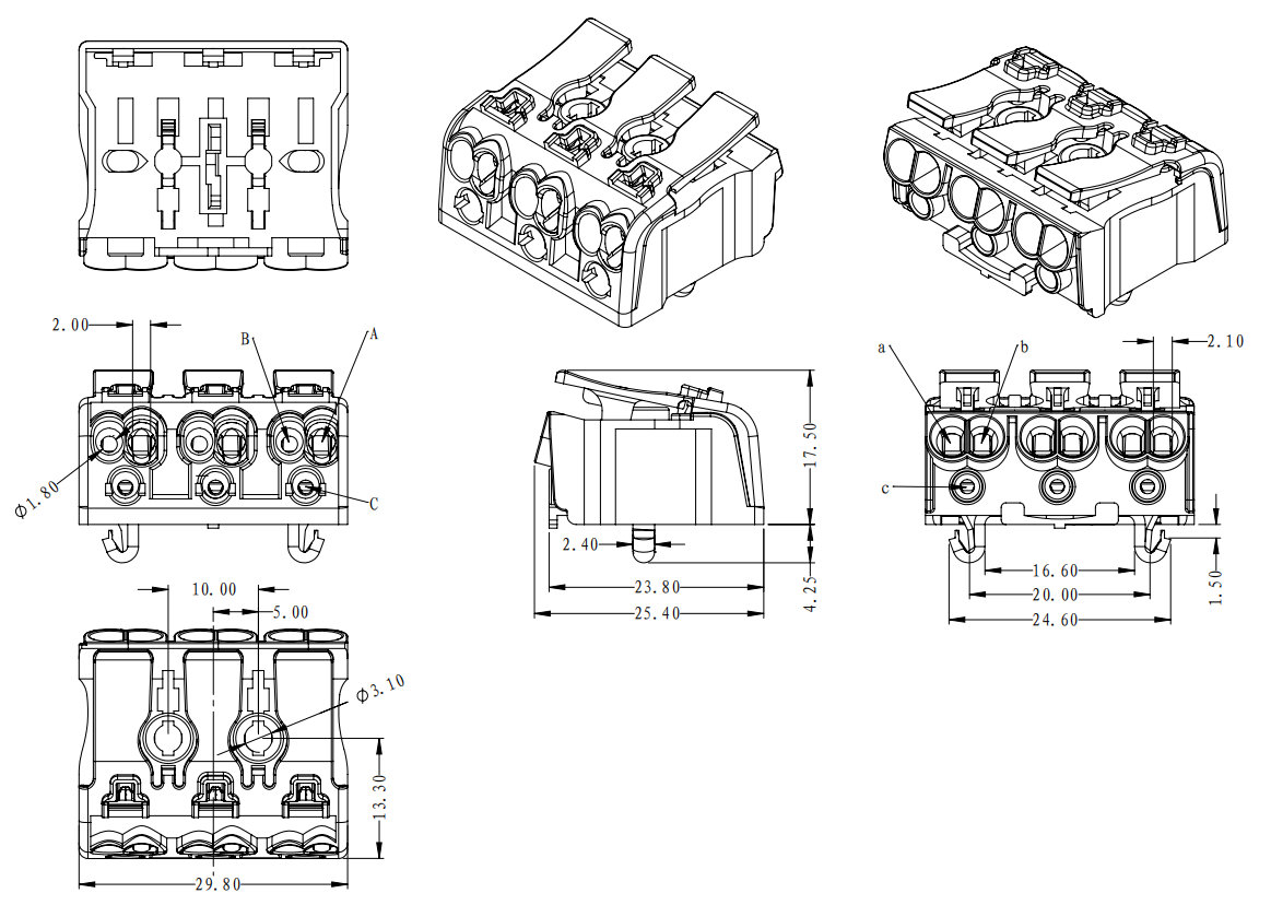 工廠側(cè) | A孔 | 實芯線 | 0.5-2.5mm2 |