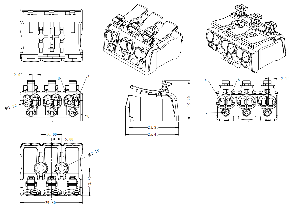 工廠側(cè) | A孔 | 實芯線 | 0.5-2.5mm2 |