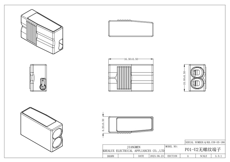 工作溫度 | 聚碳酸酯 | 105℃ |